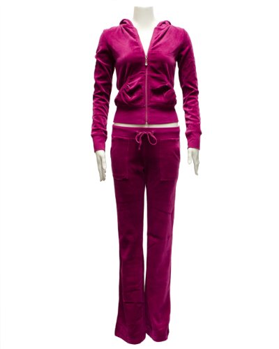 Valentine's 2013 Ladies Velour Hoody Tracksuit Kangaroo Pocket Fuchsia Pink - Overviews